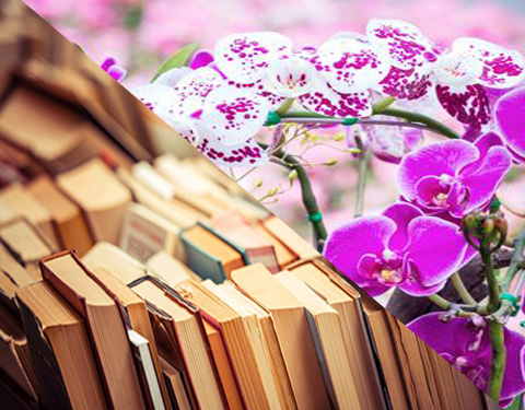 Dive into captivating books with our book rental kiosk and discover the beauty of orchids at our orchid kiosk.